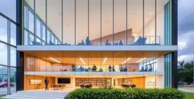 A nova sede da UME Dino Bueno em Santos é moderna e ampla, oferecendo melhores condições.